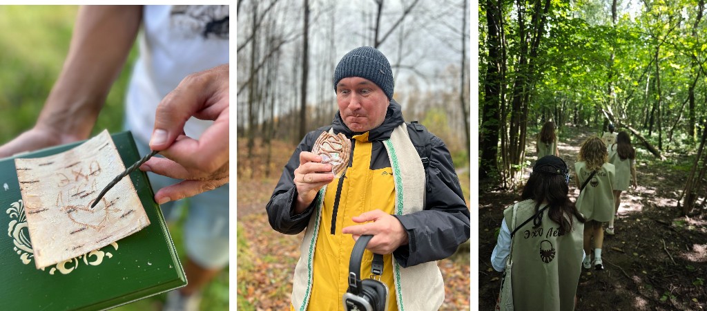 Особую роль играет проводница маршрута — Берегиня. Она указывает путь, показывает артефакты, угощает ароматными пряниками, приготовленными по древним рецептам. Показывает культурные памятники, спрятанные в чаще леса… Каждая деталь здесь продумана и наполнена эстетикой. В деревянной шкатулке с надписью «Эхо Леса» собраны символы памяти о предках - настоящие артефакты. Ленточки разных цветов — знак того, что мы помним свой род, своих бабушек и дедушек. И это не случайные образы: задумайтесь, ведь в словах «род», «народ», «родина», «родник» скрыт один и тот же корень. Для наших предков каждое слово, каждый символ имел глубокий смысл и мудрость.