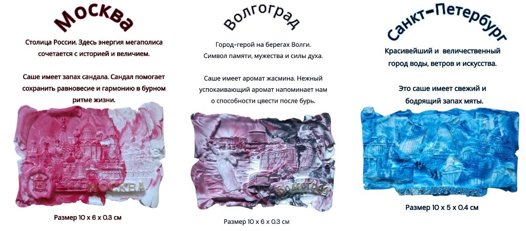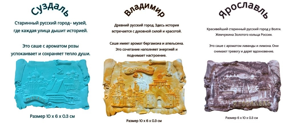 - Серия «Древние города России» — каждый арома-камень посвящён одному из старинных городов, хранит его дух, атмосферу и аромат.