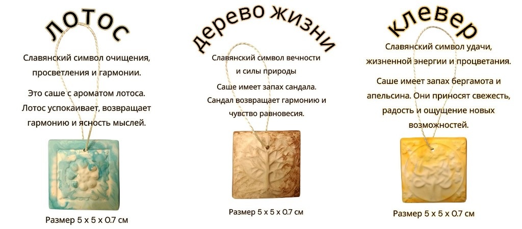 - Серия «Славянские символы» — камни с обережными знаками (например, символ Берегини), сопровождаются описанием значения на русском и английском языке.