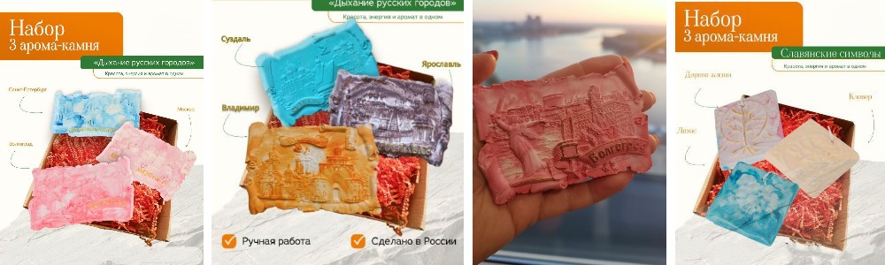 - Серия «Древние города России» — каждый арома-камень посвящён одному из старинных городов, хранит его дух, атмосферу и аромат. Имеются аромакамни с городами: Москва, Санкт-Петербург, Волгоград, Ярославль, Суздаль, Владимир.